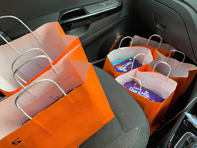 Very importantly, there was no personal contact as the deliveries were left on their doorsteps. All bags were age appropriate and we called them our ‘Orange bags of cinema sunshine’.