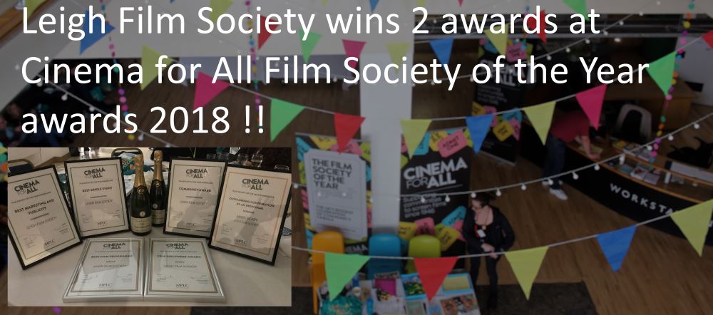 Leigh Film Society have won more awards at the prestigious Film Society of the Year event held by Cinema For All in Sheffield. We collected the Film Discovery Award for the 2nd year running and we also won Best Film Programme, a traditionally more hotly contested category for the first time.